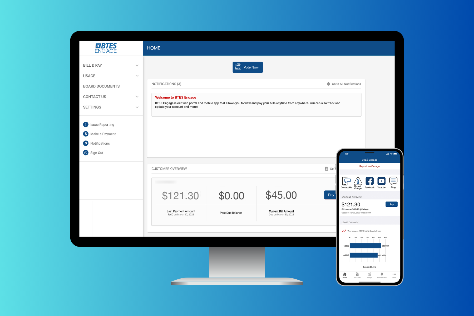 - Once you are logged in, you will be able to view and pay bills, manage account notifications, enroll in BTES programs, and much more – all from one convenient place.